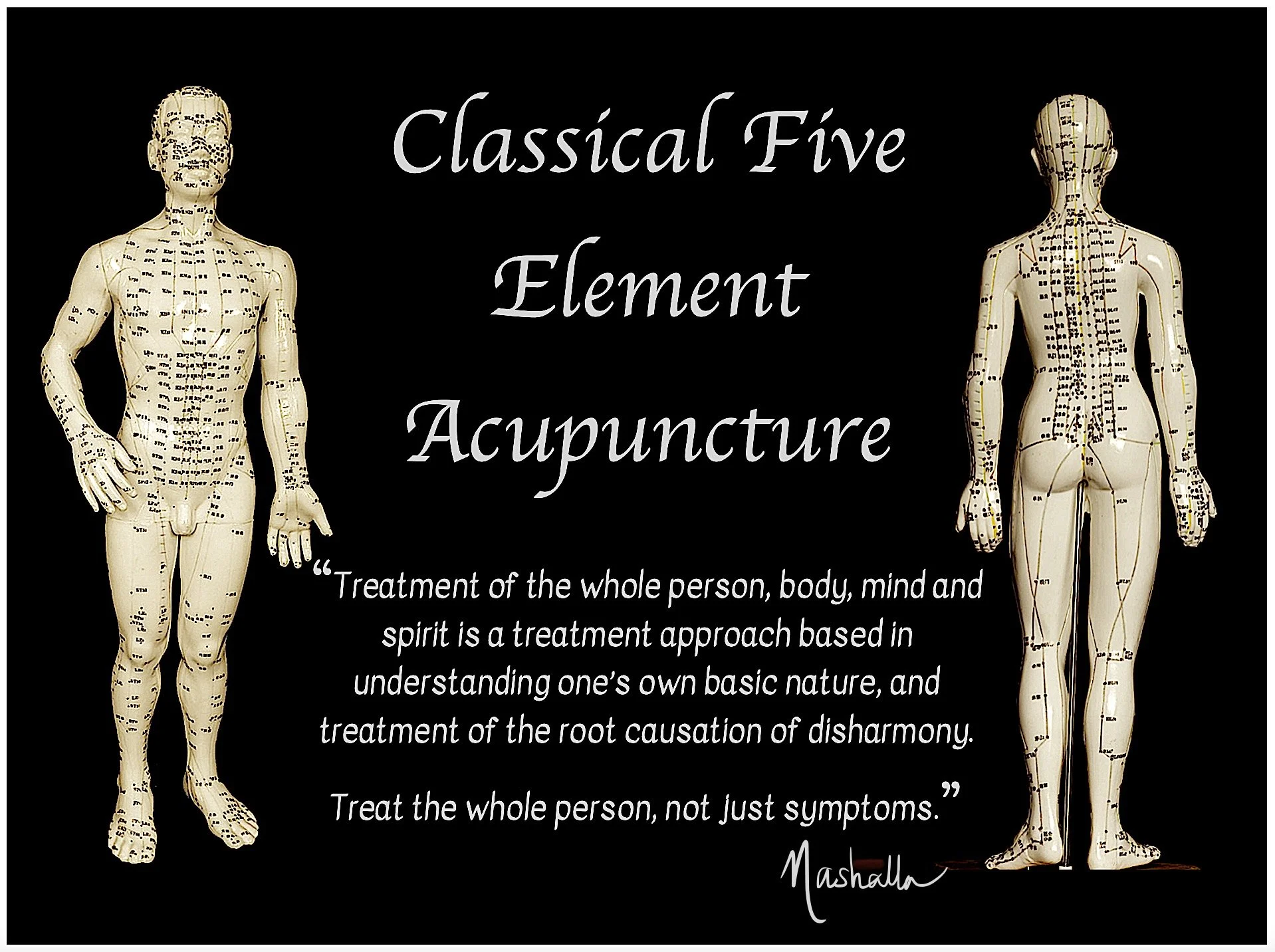 Pre-1950’s Chinese Medicine was heavily influenced by the Taoist system of nature working in harmony with a person’s Body-Mind-Spirit. The elements of water, wood (air), fire, earth and metal (space) are worked with to create balance. The Law of the Five Elements and their association to the Body-Mind-Spirit are the essence of Ancient Chinese Medicine. The modern TCM will use ,multiple approaches and script of what a point can do to treat signs and symptoms, while with the Five-Element approach we trust in natures ability to heal itself. IN this way the deeper root causes of disease and disregulation of a body, mental/emotional or spiritual issue are addressed as priority, rather than treating symptoms alone with recipes of how to effect with a point. WE honor and utilize the full spirit of a point and what it has to offer humanity. This alternative and yet very ancient paradigm creates lasting results over time and serves to create the best version of the full YOU possible. We do not work with Chinese herbs.