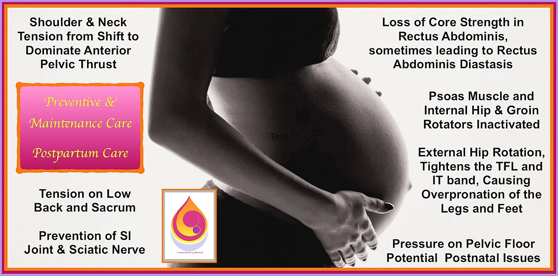 Practitioners of the Sowa Birthing Method™ are not only licensed to touch and work with the body, but are throughly trained in recognizing the need for prevention of possible complications, contraindications as well as the mitigation of such symptoms and influences. Safe and well trained practitioners are an integral part of this program.